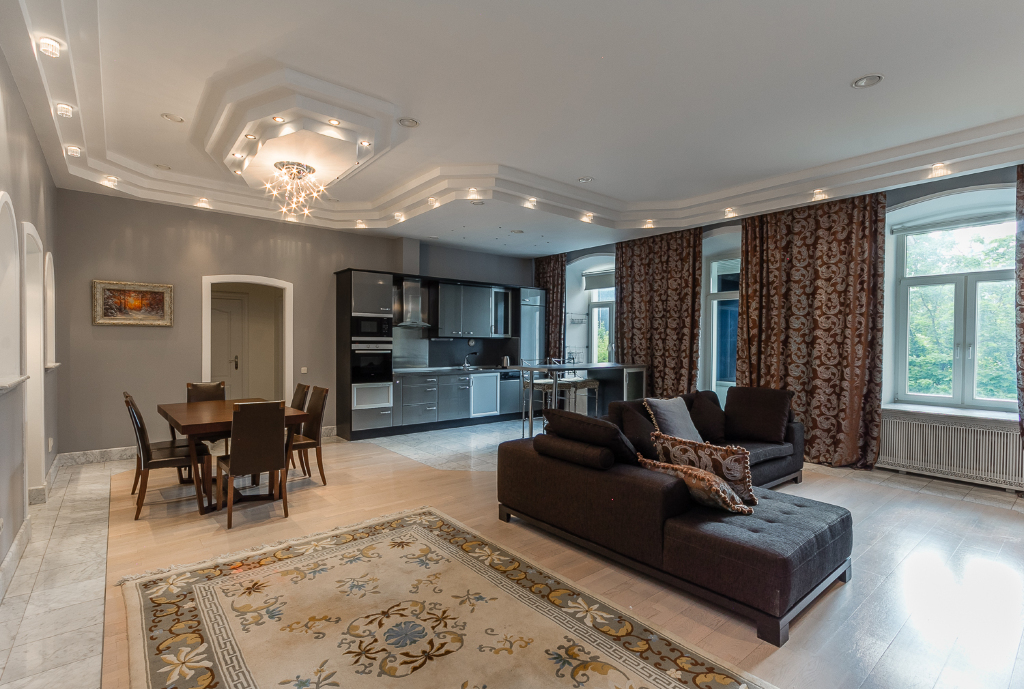 Купить квартиру в ЖК Барыковские Палаты возможно на вторичном рынке. Метраж варьируется от 98 до 380 кв.м. Высота потолков составляет 3,45 метров. В каждой квартире спланирован уютный открытой балкон. Верхние этажи занимают пентхаусы с панорамным остеклением, действующим дровяным камином и потрясающими видами на знаковые достопримечательности центра и уютные улочки Золотой Мили.